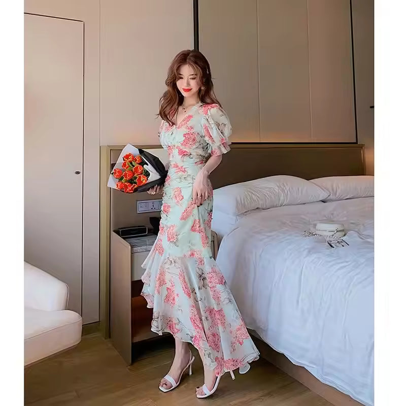The women’s slim printed summer dress features a fashionable Korean temperament with a modern, feminine look. Designed to be eye-catching yet elegant, it’s perfect for warm-weather styling.